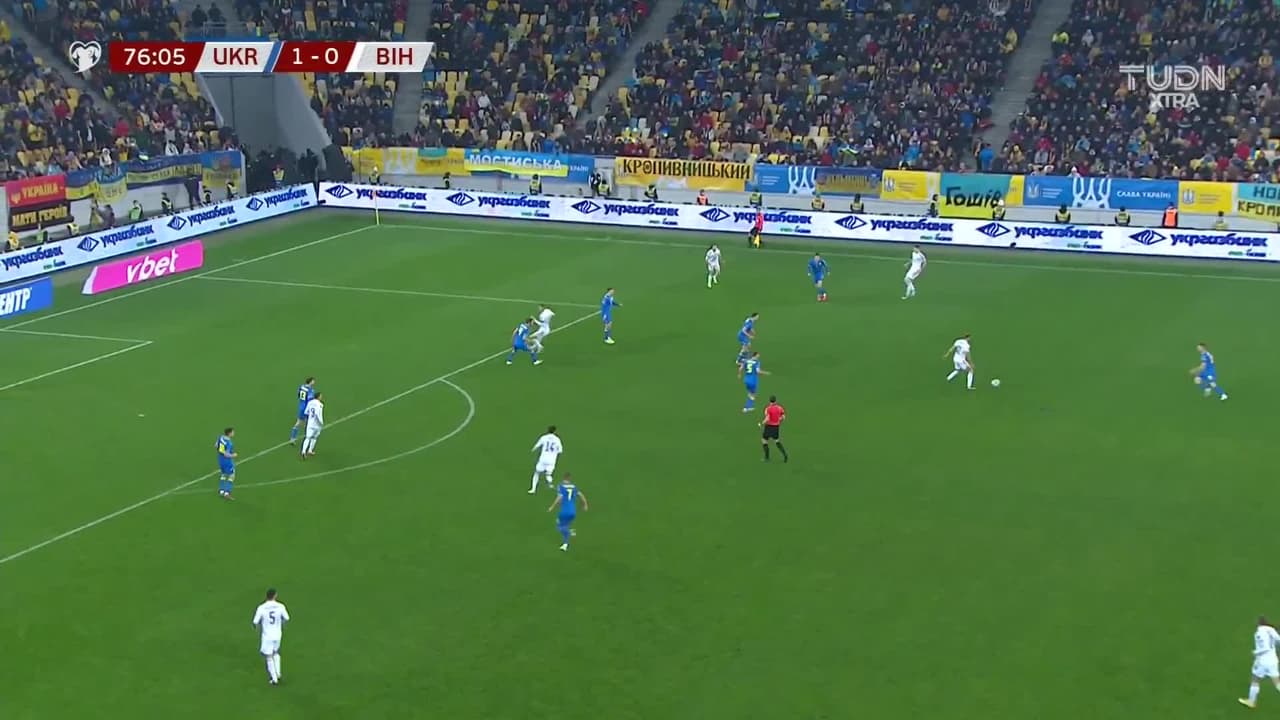 ¡Gol! Ucrania 1| Bosnia-Herzegovina 1. Anel Ahmedhodzic (Bosnia-Herzegovina) Disparo con la derecha desde el lado derecho dentro del área disparo rastrero| junto al palo izquierdo. Asistencia de Miroslav Stevanovic.