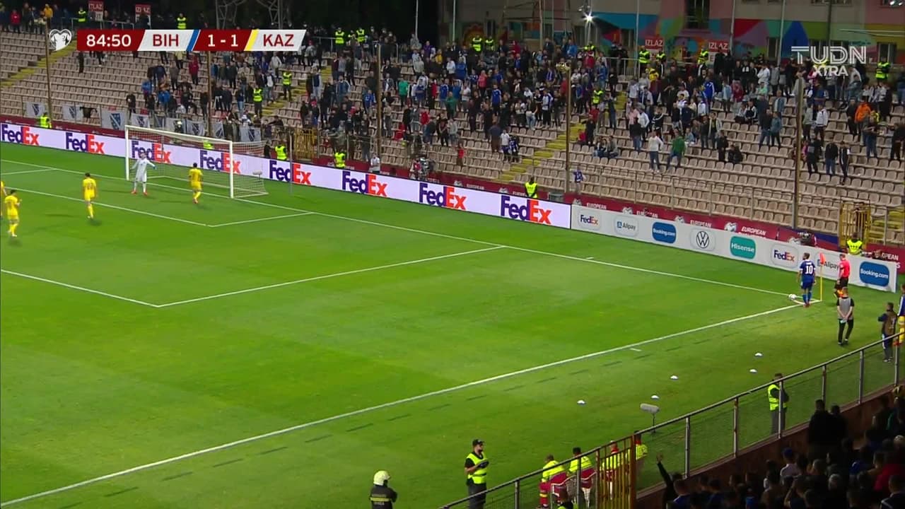 ¡Gooooool! Bosnia y Herzegovina 2, Kazajistán 1. Luka Menalo (Bosnia y Herzegovina) remate de cabeza desde el centro del área tras un saque de esquina.