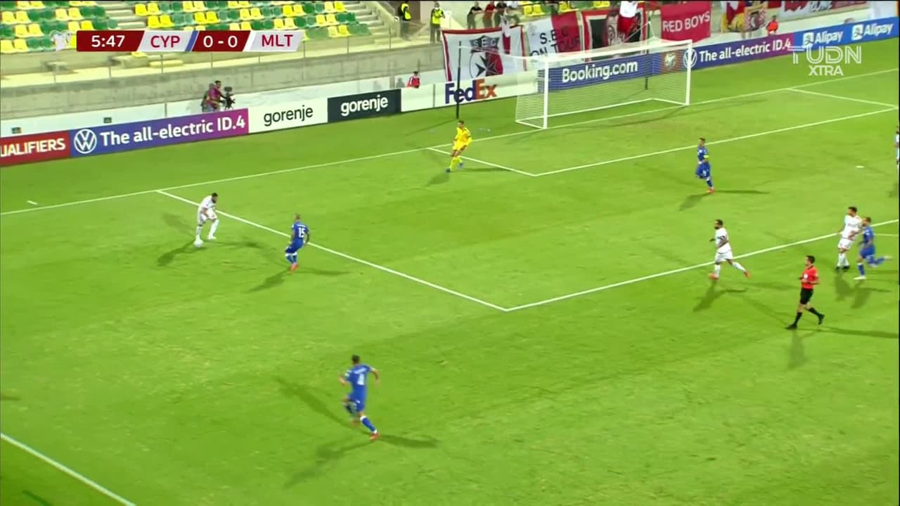 ¡Gol! Chipre 1| Malta 0. Fotios Papoulis (Chipre) Disparo con la derecha desde el lado izquierdo dentro del área.