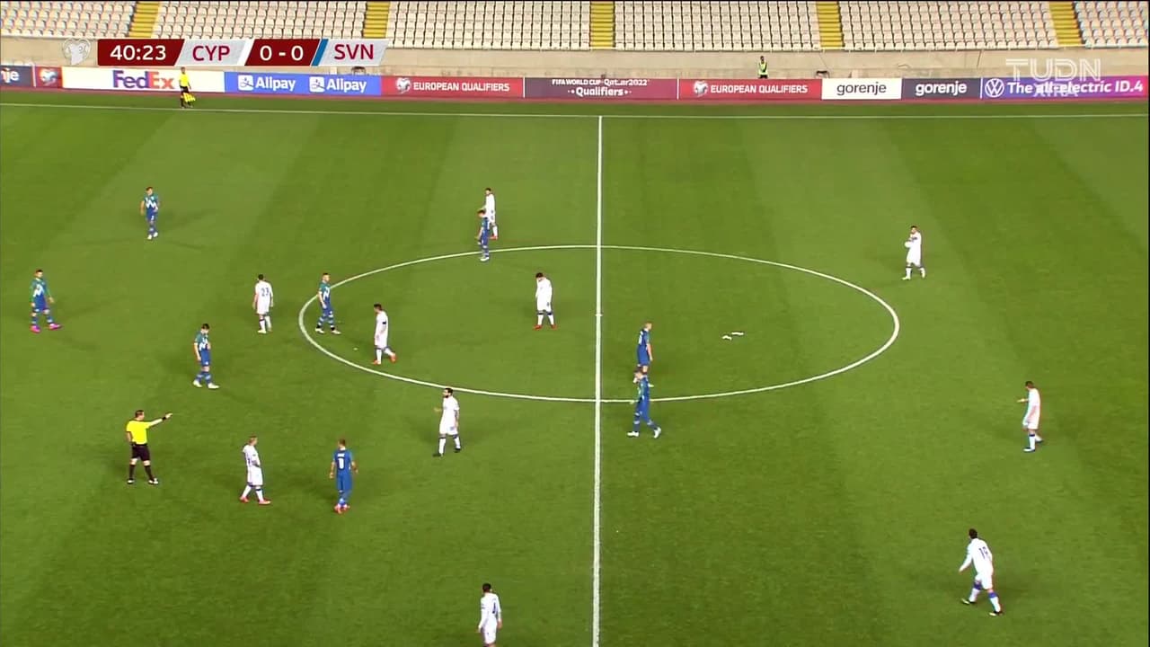 ¡Gol! Chipre 1| Eslovenia 0. Ioannis Pittas (Chipre) zurdazo desde el centro del área al ángulo superior izquierdo. Asistencia de Fotios Papoulis.
