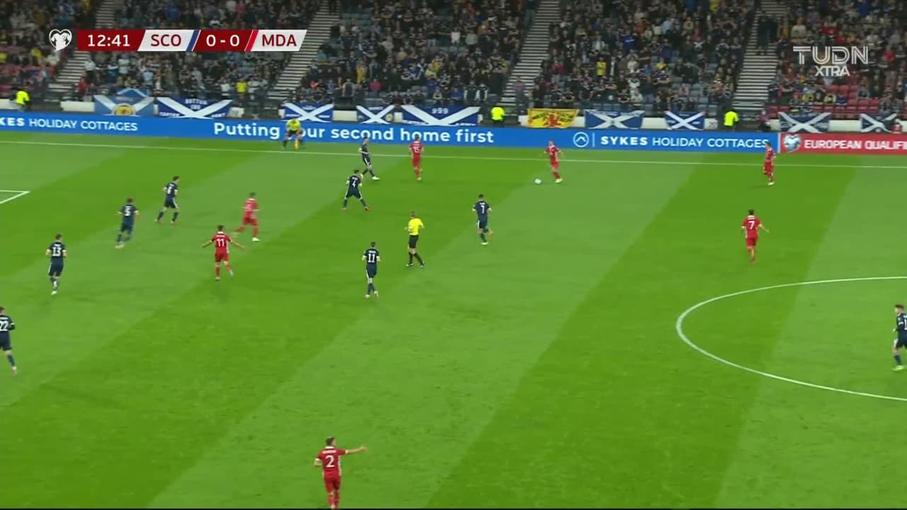 ¡Gooooool! Escocia 1, Moldavia 0. Lyndon Dykes (Escocia) remate con la derecha desde muy cerca.