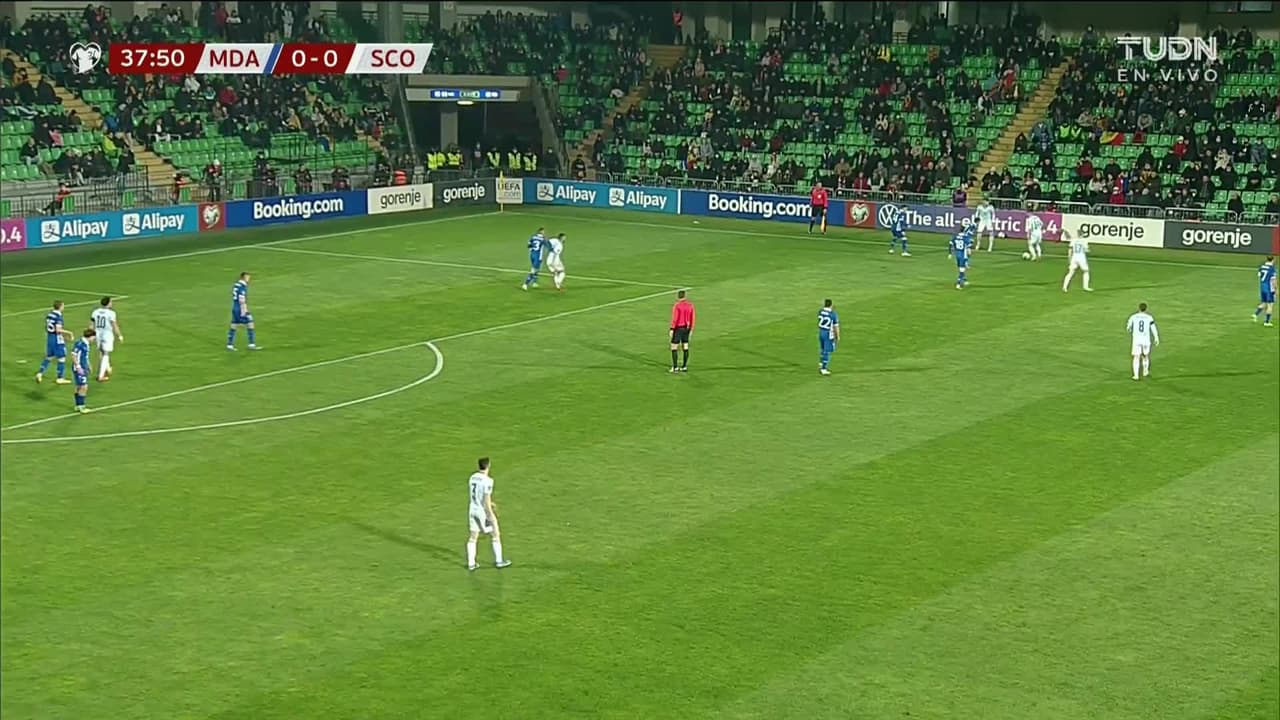 ¡Gol! Moldova 0| Escocia 1. Nathan Patterson (Escocia) zurdazo desde el lado derecho dentro del área disparo rastrero| junto al palo izquierdo. Asistencia de John McGinn.