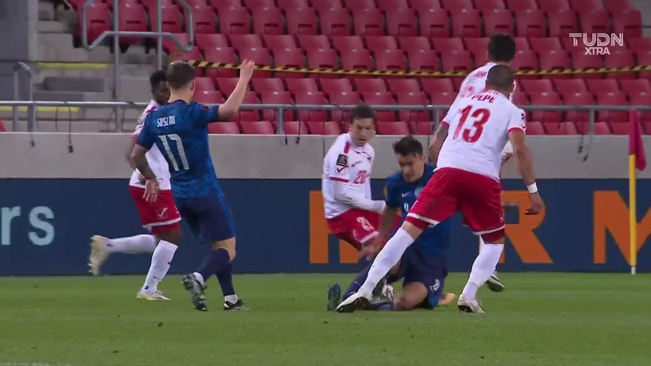 ¡Gol! Eslovaquia 1| Malta 2. Dávid Strelec (Eslovaquia) disparo de cabeza desde muy cerca tras el cobro de una falta.