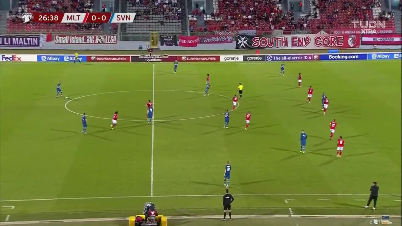 ¡Gol! Malta 0| Eslovenia 1. Josip Ilicic (Eslovenia) zurdazo desde el centro del área disparo rastrero| junto al palo izquierdo. Asistencia de Jure Balkovec con un centro al área.