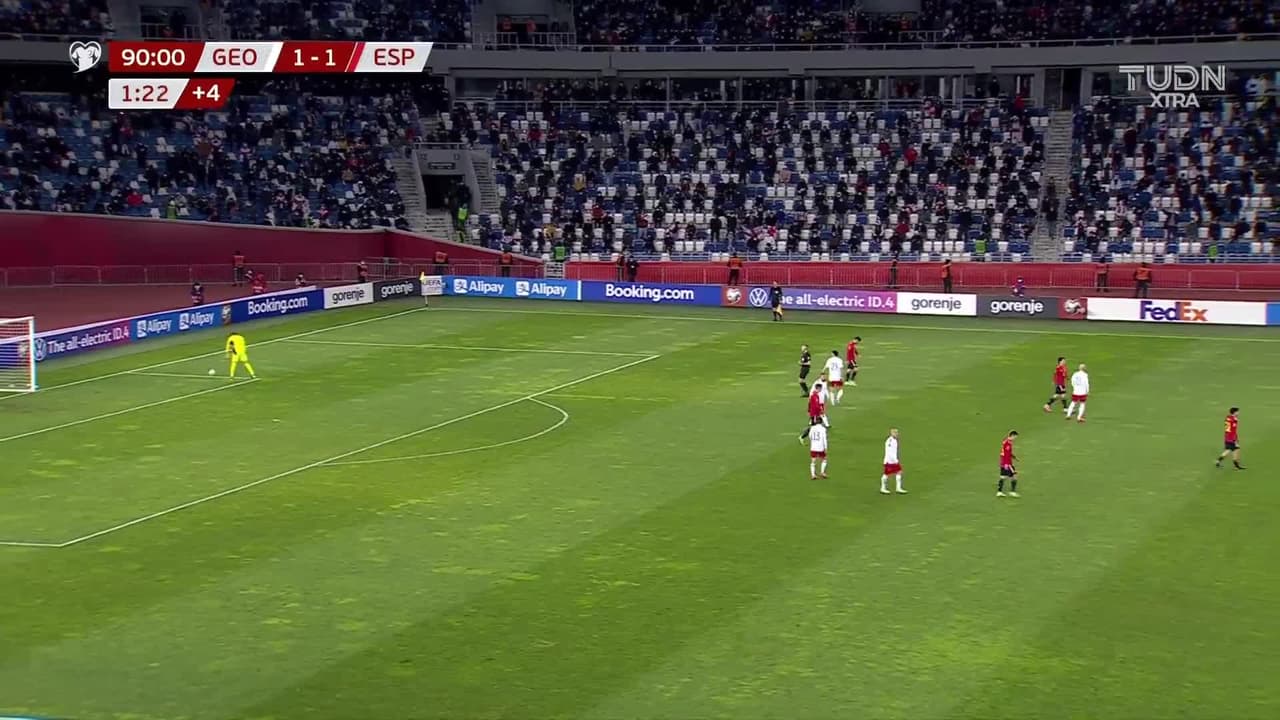 En el tiempo de compensación y con un buen disparo, Dani Olmo puso el 1-2 de España sobre Georgia en la Eliminatoria a Catar 2022.