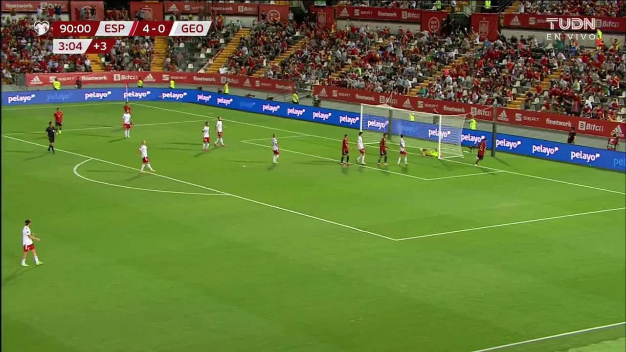 ¡Gooooool! España 5| Georgia 0. Pablo Sarabia (España) remate con la izquierda a quemarropa desde el lado derecho.