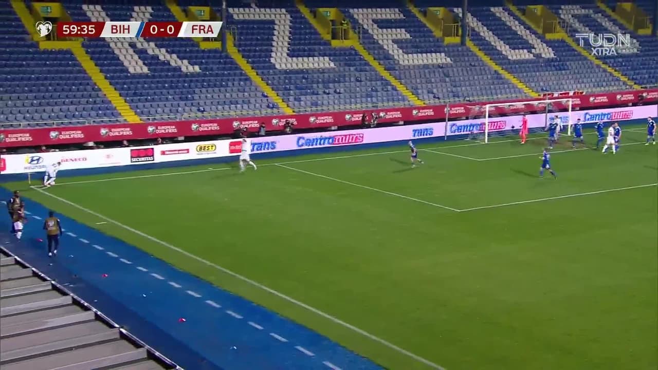 ¡Gol! Bosnia-Herzegovina 0| Francia 1. Antoine Griezmann (Francia) disparo de cabeza desde el centro del área tras un saque de esquina.