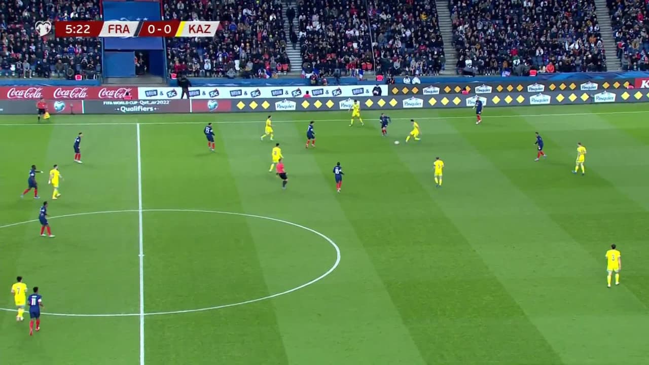 ¡Gol! Francia 1| Kazajistán 0. Kylian Mbappé (Francia) Disparo con la derecha desde el centro del área disparo rastrero| junto al palo izquierdo. Asistencia de Theo Hernández.