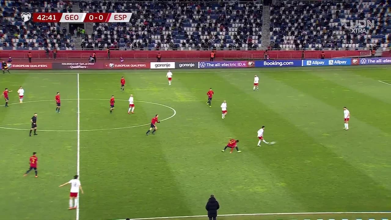 Khvicha Kvaratskhelia abrió el marcador con un zurdazo en el área para poner en ventaja a los locales ante una desconocida España.