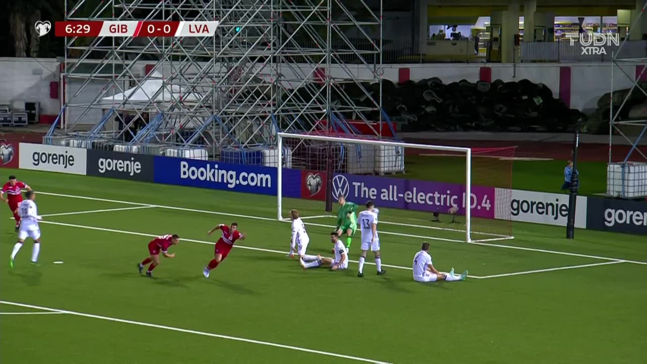 ¡Gol! Gibraltar 1| Letonia 0. Liam Walker (Gibraltar) zurdazo desde el centro del área al centro de la portería. Asistencia de Tjay De Barr tras un contragolpe.