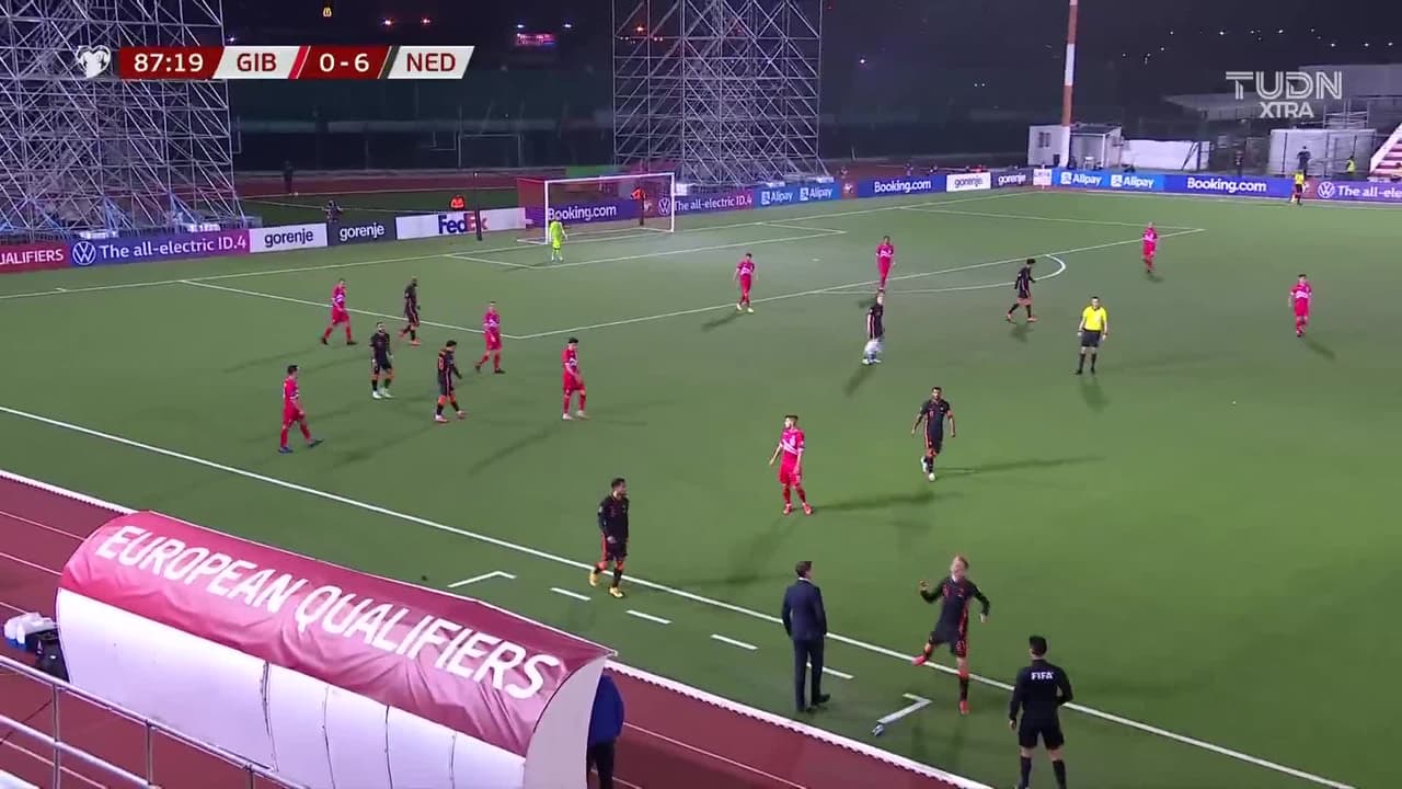 ¡Gol! Gibraltar 0| Holanda 7. Memphis Depay (Holanda) Disparo con la derecha desde muy cerca.