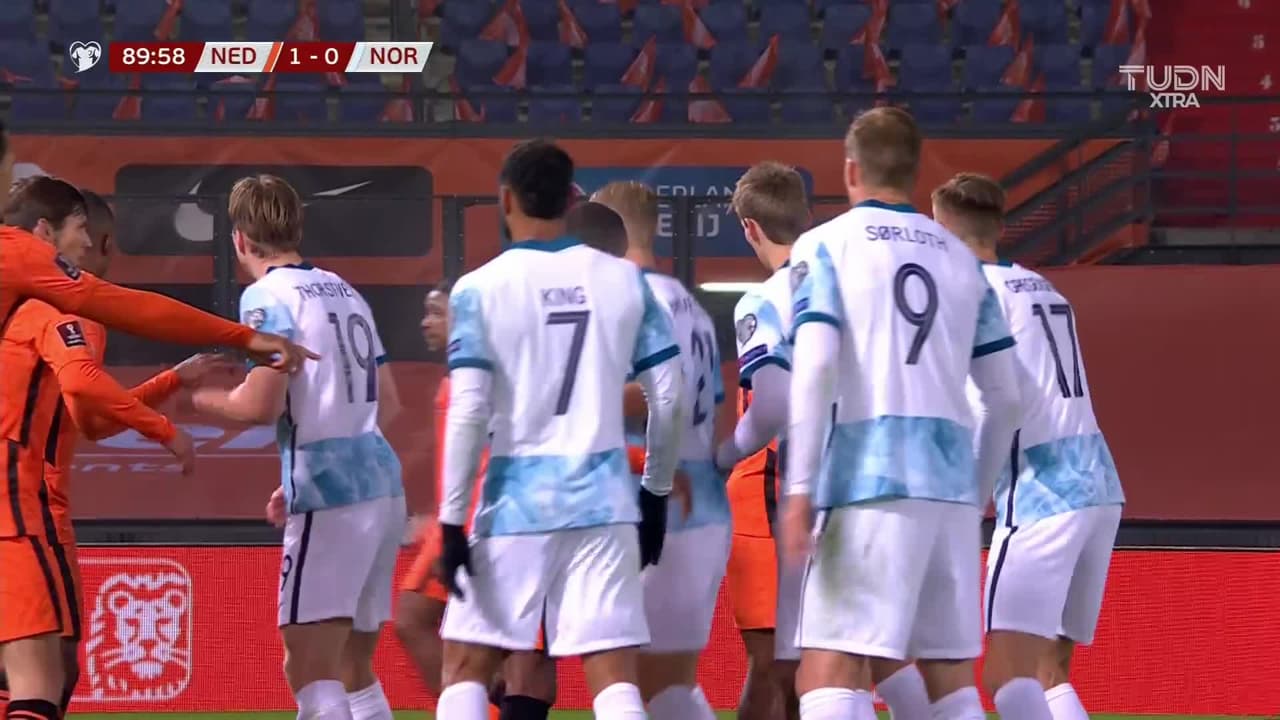 ¡Gol! Holanda 2| Noruega 0. Memphis Depay (Holanda) zurdazo a quemarropa desde el lado izquierdo tras un contragolpe.
