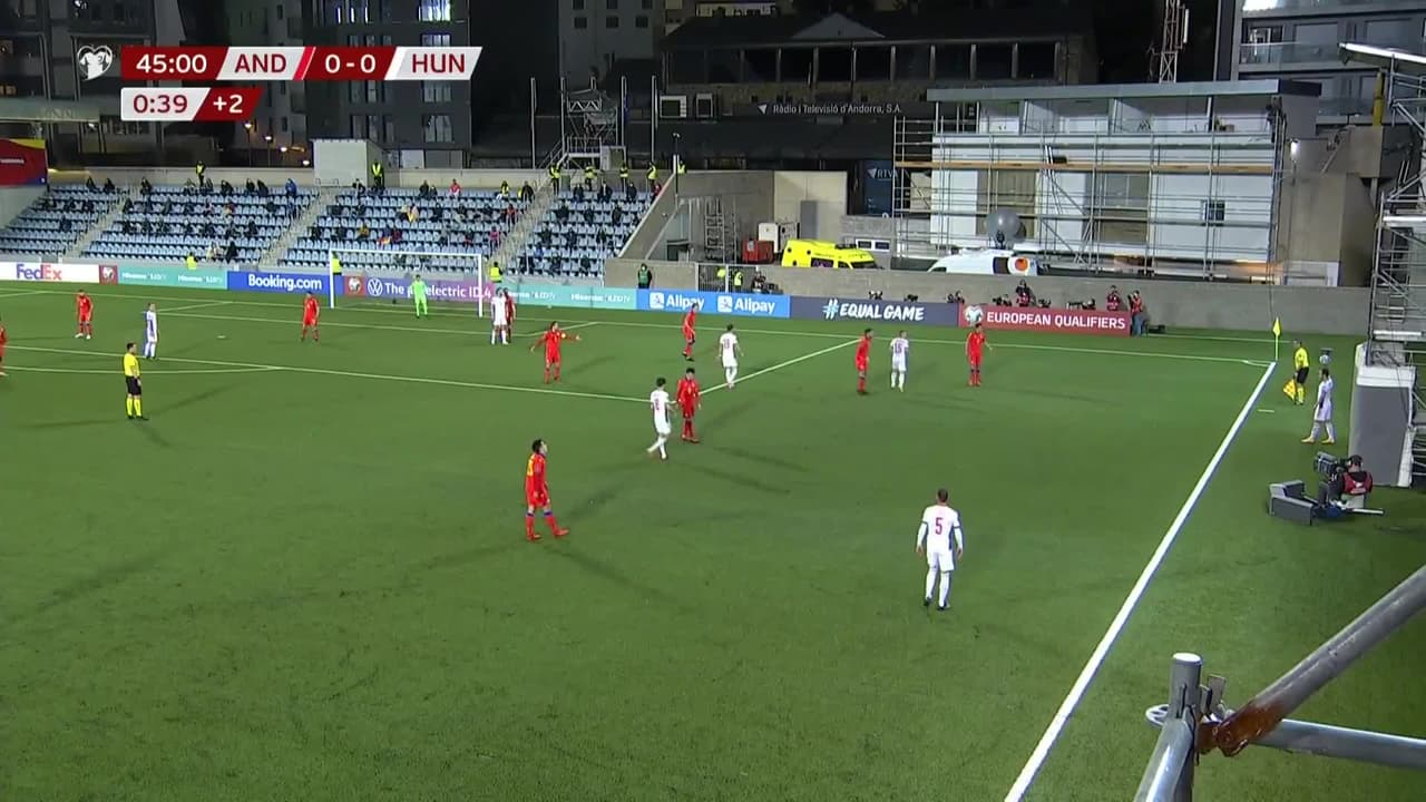 ¡Gol! Andorra 0| Hungría 1. Attila Fiola (Hungría) disparo de cabeza desde muy cerca disparo rastrero| junto al palo izquierdo. Asistencia de Nemanja Nikolics tras un saque de esquina.