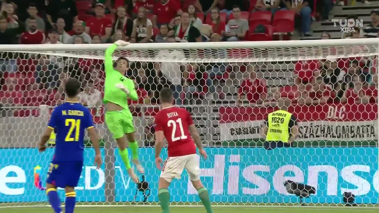 ¡Gooooool! Hungría 2| Andorra 0. Endre Botka (Hungría) remate de cabeza desde el centro del área tras un saque de esquina.