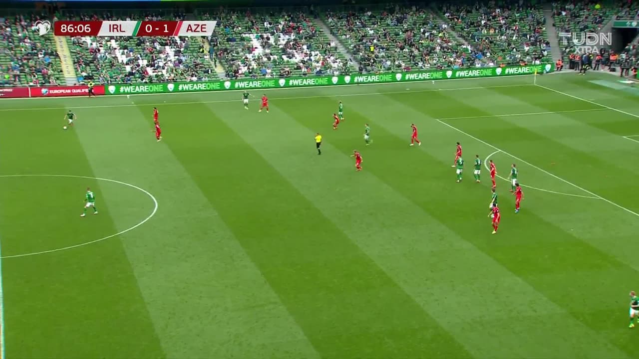 ¡Gol! Irlanda 1| Azerbaiyán 1. Shane Duffy (Irlanda) disparo de cabeza desde el centro del área.