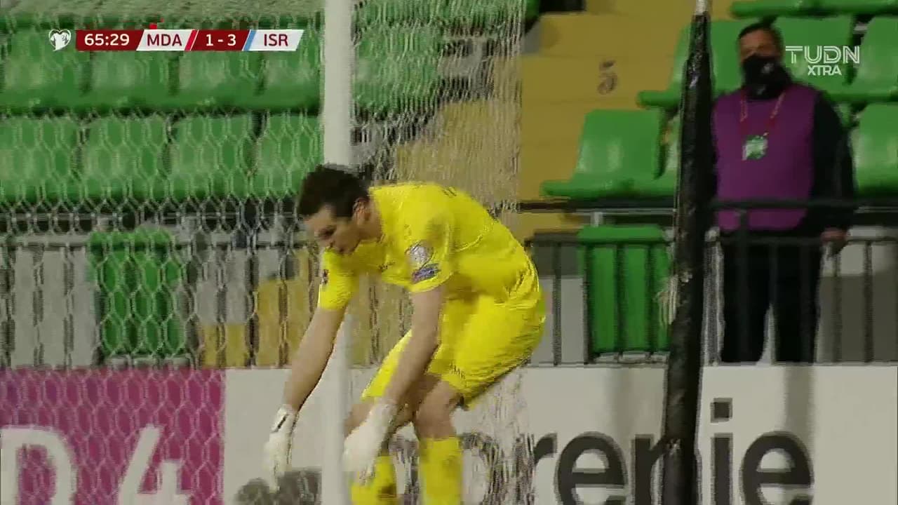 ¡Gol! Moldova 1| Israel 4. Bibras Natcho (Israel) Disparo con la derecha desde fuera del área.