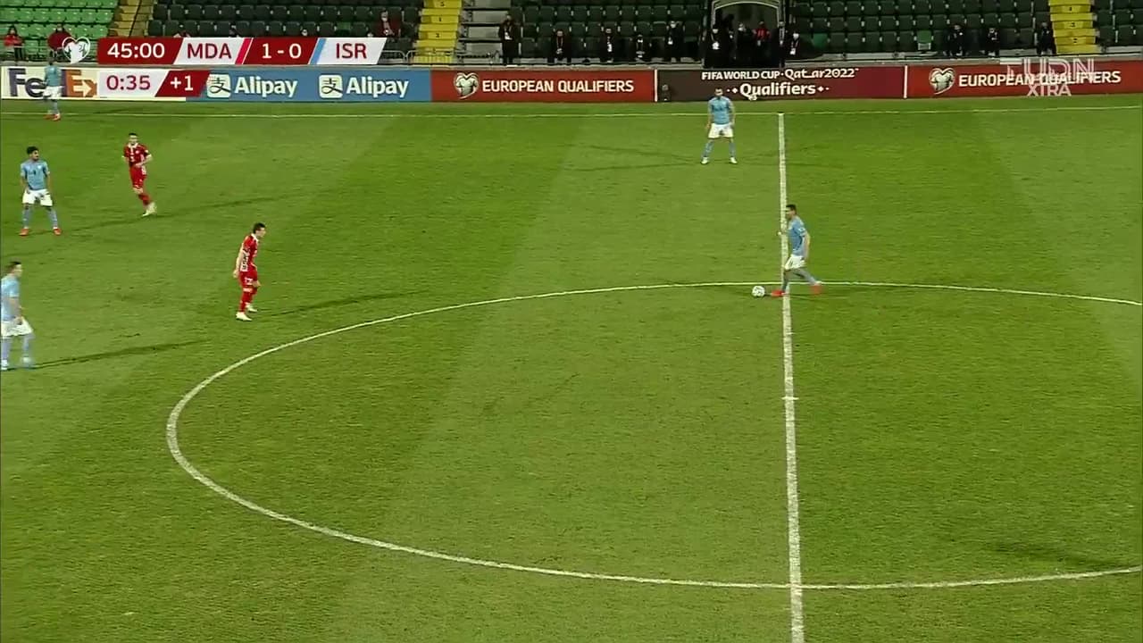 ¡Gol! Moldova 1| Israel 1. Eran Zahavi (Israel) zurdazo desde el centro del área.
