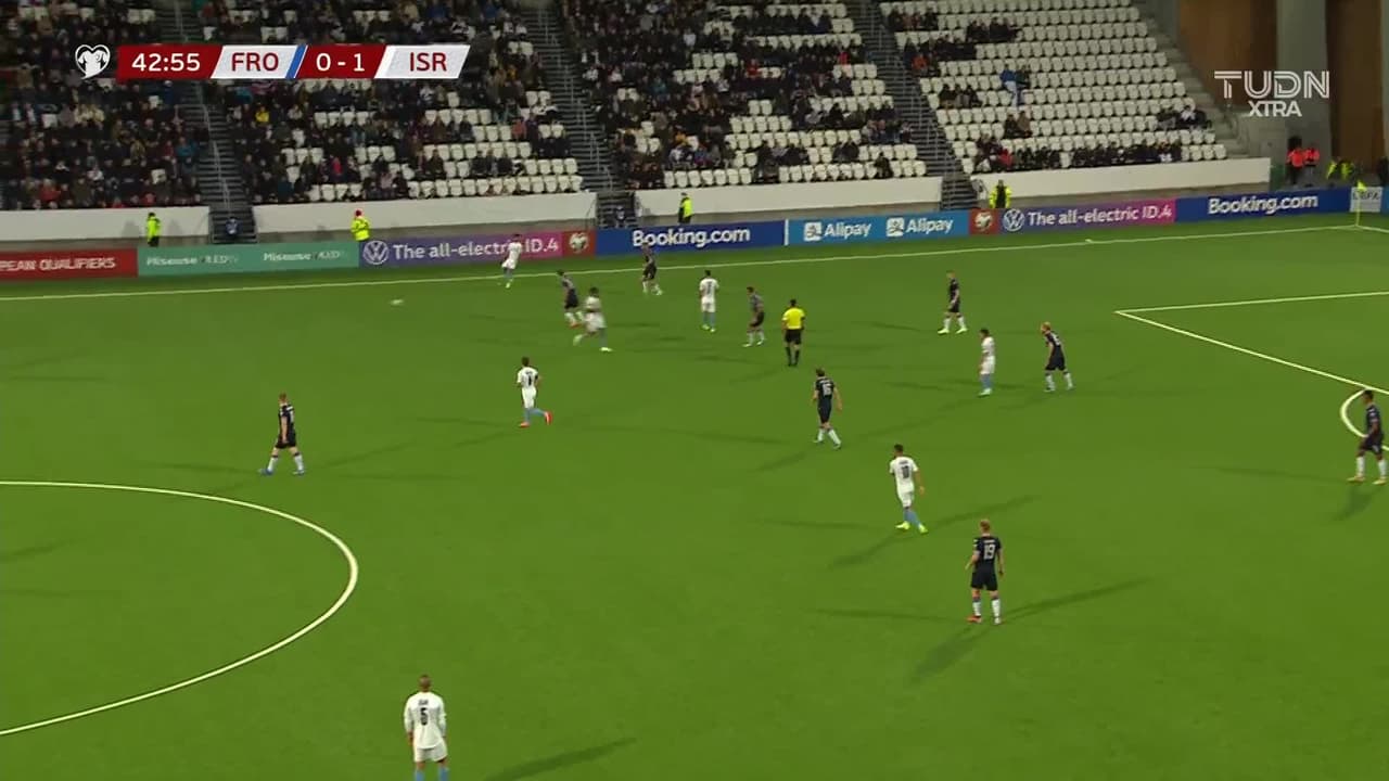 ¡Gol! Islas Faroe 0| Israel 2. Eran Zahavi (Israel) Disparo con la derecha desde fuera del área disparo rastrero| junto al palo izquierdo. Asistencia de Munas Dabbur.