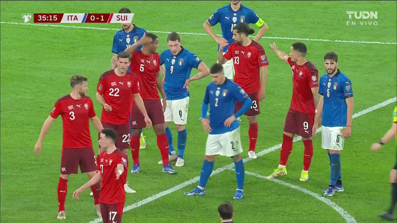 ¡Gol! Italia 1| Suiza 1. Giovanni Di Lorenzo (Italia) disparo de cabeza desde muy cerca disparo rastrero| junto al palo izquierdo. Asistencia de Lorenzo Insigne con un centro al área tras el cobro de una falta.