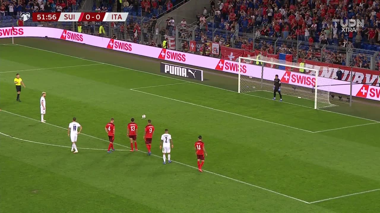 ¡Gooooool! Suiza 0, Italia 1. Jorginho (Italia) convirtió el penalti remate con la derecha por el lado derecho de la portería.