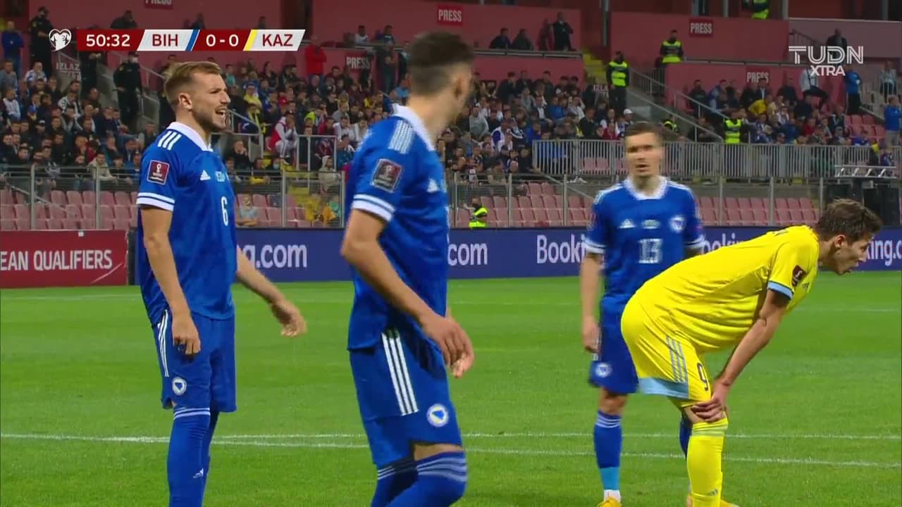 ¡Gooooool! Bosnia y Herzegovina 0, Kazajistán 1. Islambek Kuat (Kazajistán) remate con la izquierda desde muy cerca por el centro de la portería. Asistencia de Askhat Tagybergen con un centro al área tras un saque de esquina.