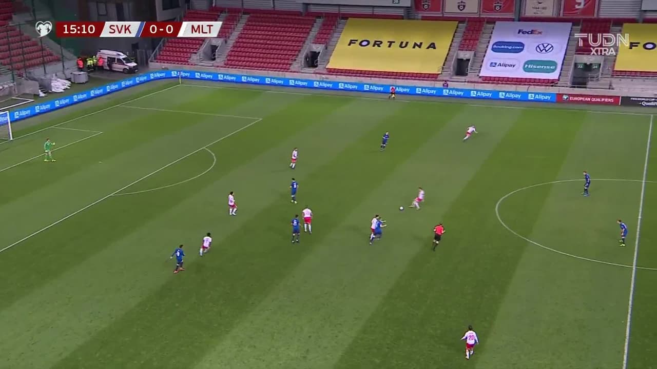 ¡Gol! Eslovaquia 0| Malta 1. Luke Gambin (Malta) zurdazo desde fuera del área al ángulo superior izquierdo. Asistencia de Joseph Mbong.