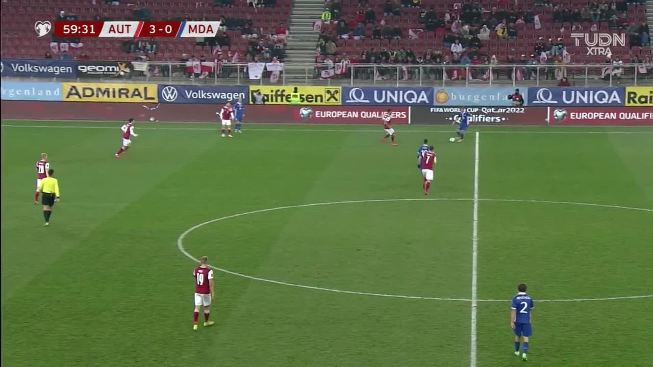 ¡Gol! Austria 3| Moldova 1. Ion Nicolaescu (Moldova) Disparo con la derecha desde el centro del área.