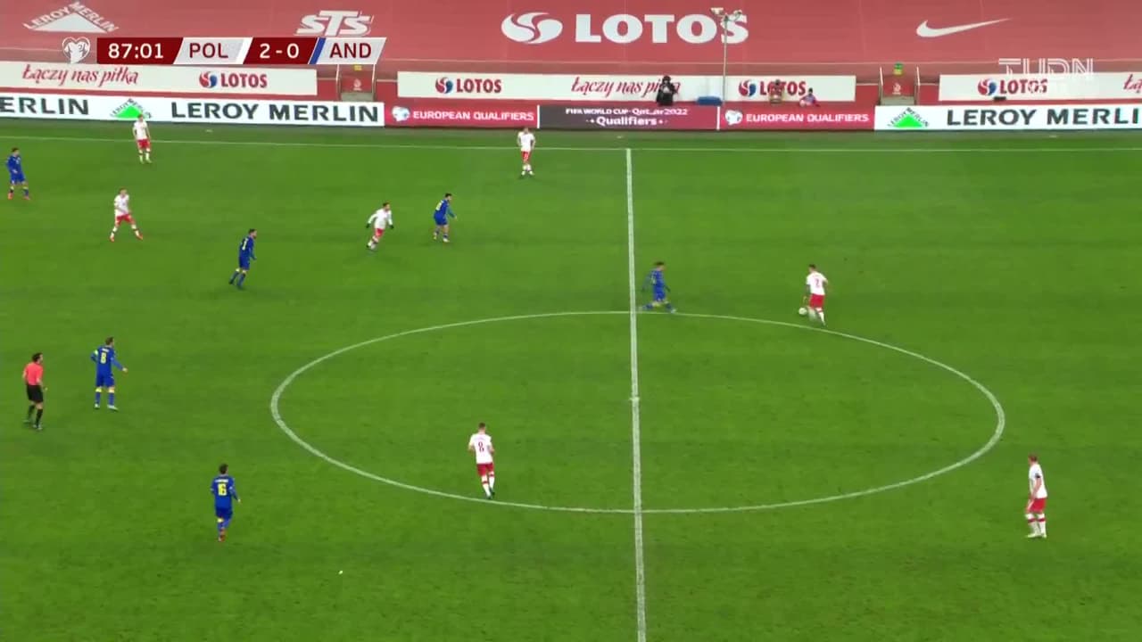 ¡Gol! Polonia 3| Andorra 0. Karol Swiderski (Polonia) zurdazo desde muy cerca al centro de la portería. Asistencia de Kamil Grosicki con un centro al área.