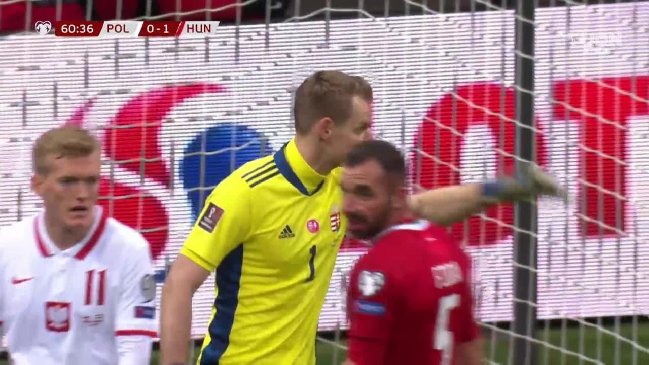 ¡Gol! Polonia 1| Hungría 1. Karol Swiderski (Polonia) disparo de cabeza desde el centro del área tras un saque de esquina.
