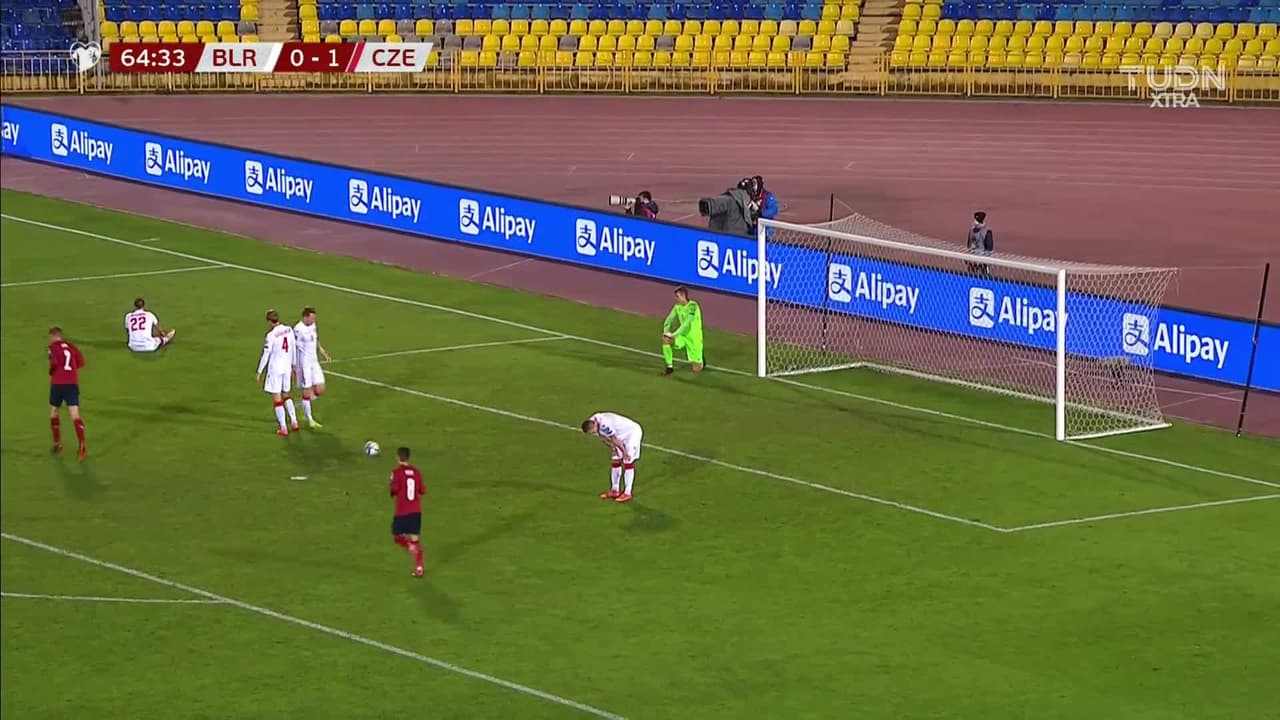 ¡Gol! Bielorrusia 0| República Checa 2. Adam Hlozek (República Checa) zurdazo desde el lado izquierdo dentro del área al ángulo superior izquierdo. Asistencia de Patrik Schick.