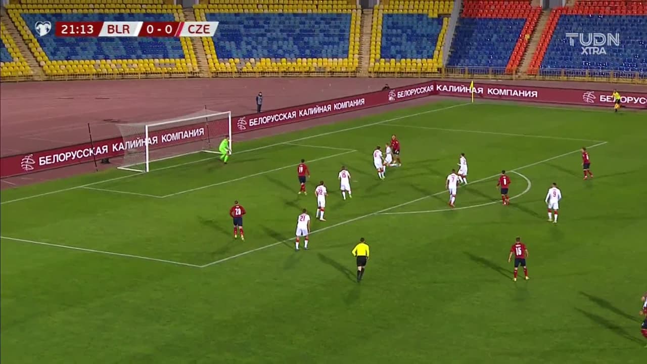 ¡Gol! Bielorrusia 0| República Checa 1. Patrik Schick (República Checa) zurdazo desde el centro del área.