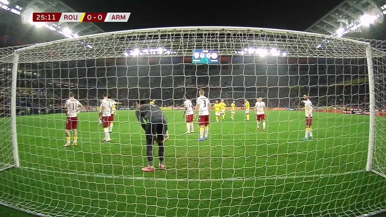 ¡Gol! Rumanía 1| Armenia 0. Alexandru Mitrita (Rumanía) disparo de cabeza desde muy cerca al centro de la portería. Asistencia de Razvan Marin con un centro al área tras un saque de esquina.