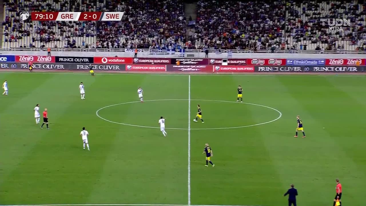 ¡Gooooool! Grecia 2, Suecia 1. Robin Quaison (Suecia) remate con la derecha desde muy cerca.