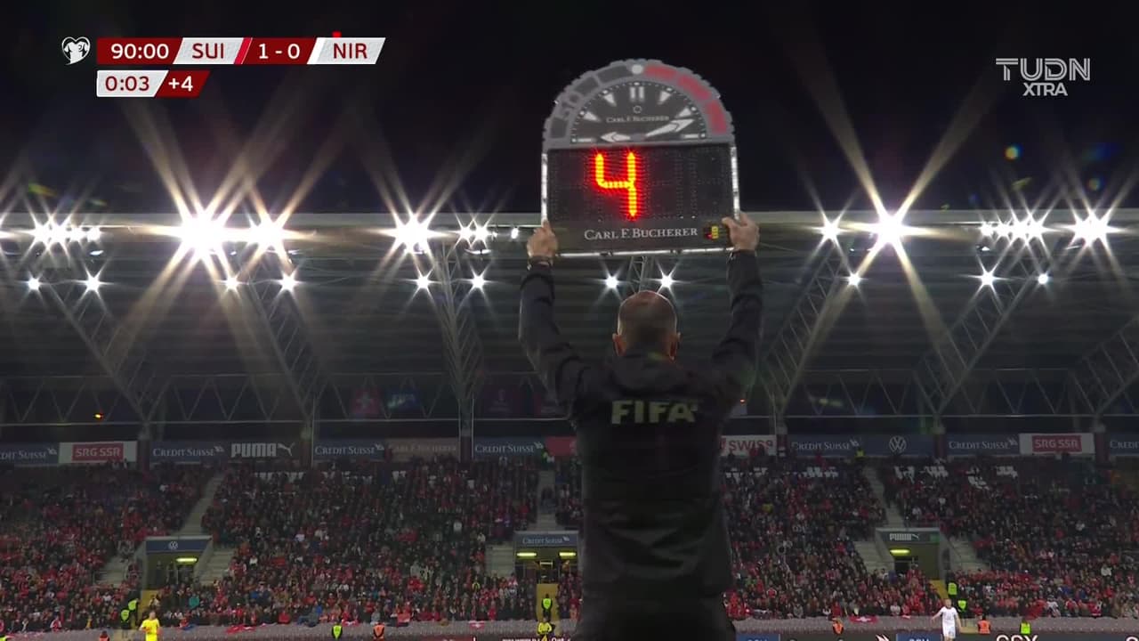¡Gol! Suiza 2| Irlanda del Norte 0. Christian Fassnacht (Suiza) Disparo con la derecha desde el centro del área tras un contragolpe.