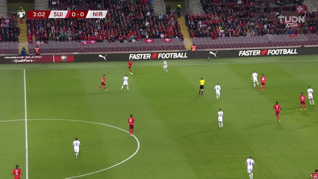 ¡Gol! Suiza 1| Irlanda del Norte 0. Denis Zakaria (Suiza) Disparo con la derecha desde fuera del área.