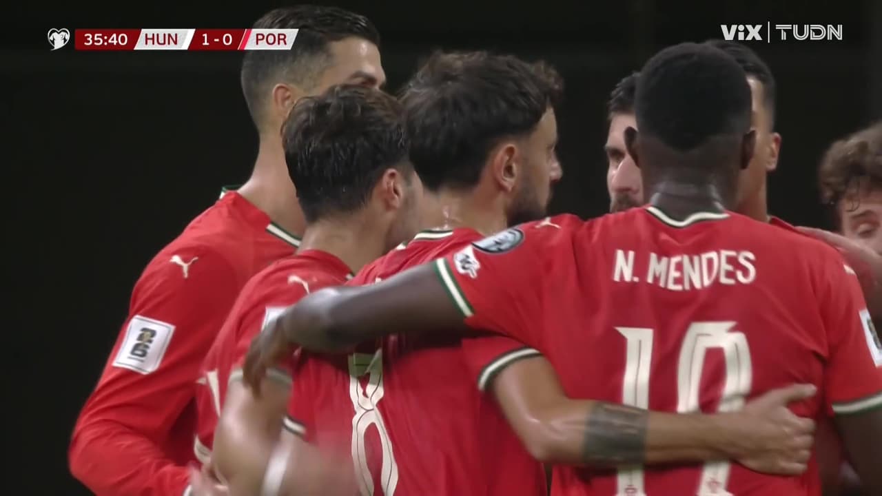 El jugador portugués aprovechó una gran jugada en el área y definió con clase para empatar el duelo ante Hungría.