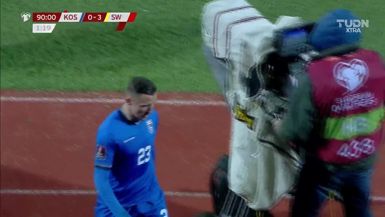 Bernard Berisha (Kosovo) segunda tarjeta amarilla por juego peligroso.