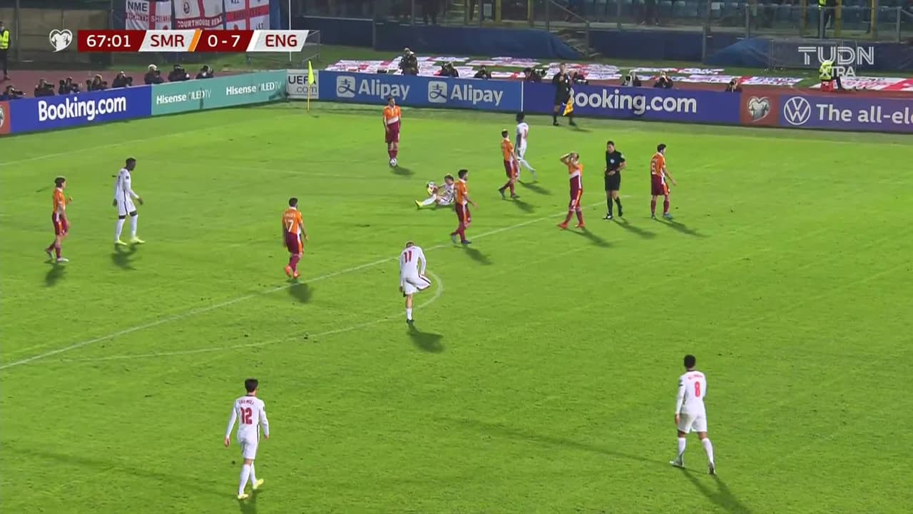 Dante Carlos Rossi (San Marino) segunda tarjeta amarilla por juego peligroso.