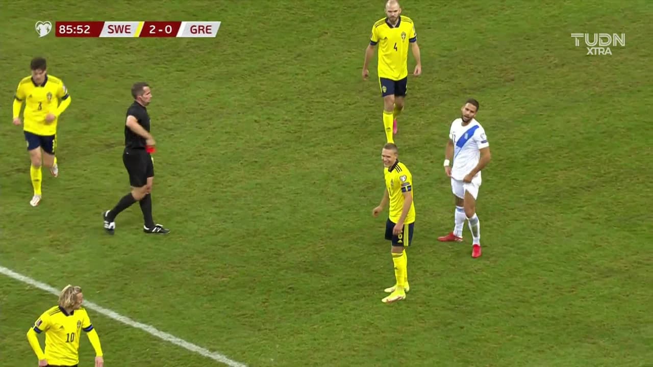 ¡Tarjeta Roja! Pantelis Hatzidiakos recibe la segunda amarilla y se va del juego.