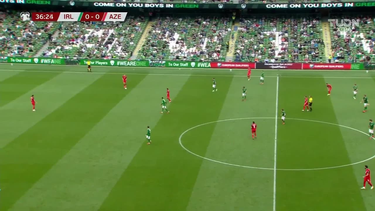 Tiro atajado por abajo a la izquierda. Aaron Connolly (Irlanda) Disparo con la derecha desde el lado izquierdo dentro del área. Asistencia de Josh Cullen.