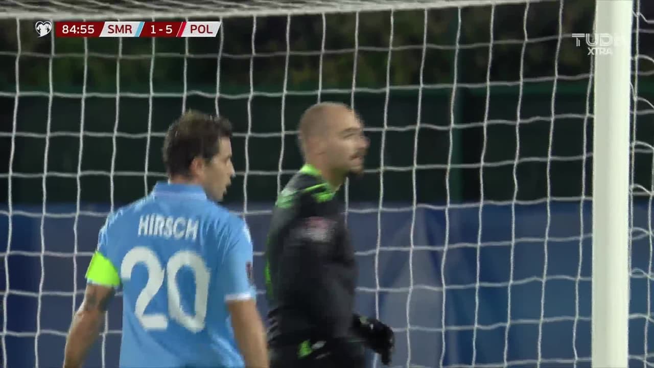Tiro atajado junto al lado derecho de la portería. Adam Buksa (Polonia) disparo de cabeza desde el centro del área. Asistencia de Jakub Kaminski con un centro al área.