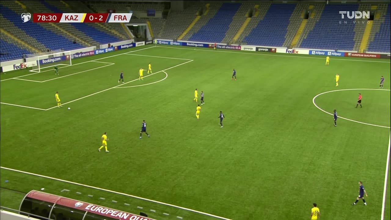 Tiro atajado raso al centro del arco. Adrien Rabiot (Francia) zurdazo sin ángulo desde la izquierda. Asistencia de Lucas Digne.