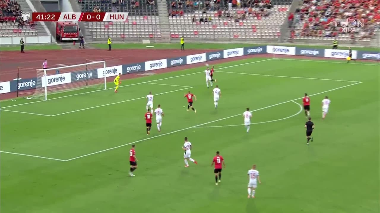 Remate parado alto y por el centro de la portería. Albi Doka (Albania) remate de cabeza desde el centro del área. Asistencia de Myrto Uzuni.