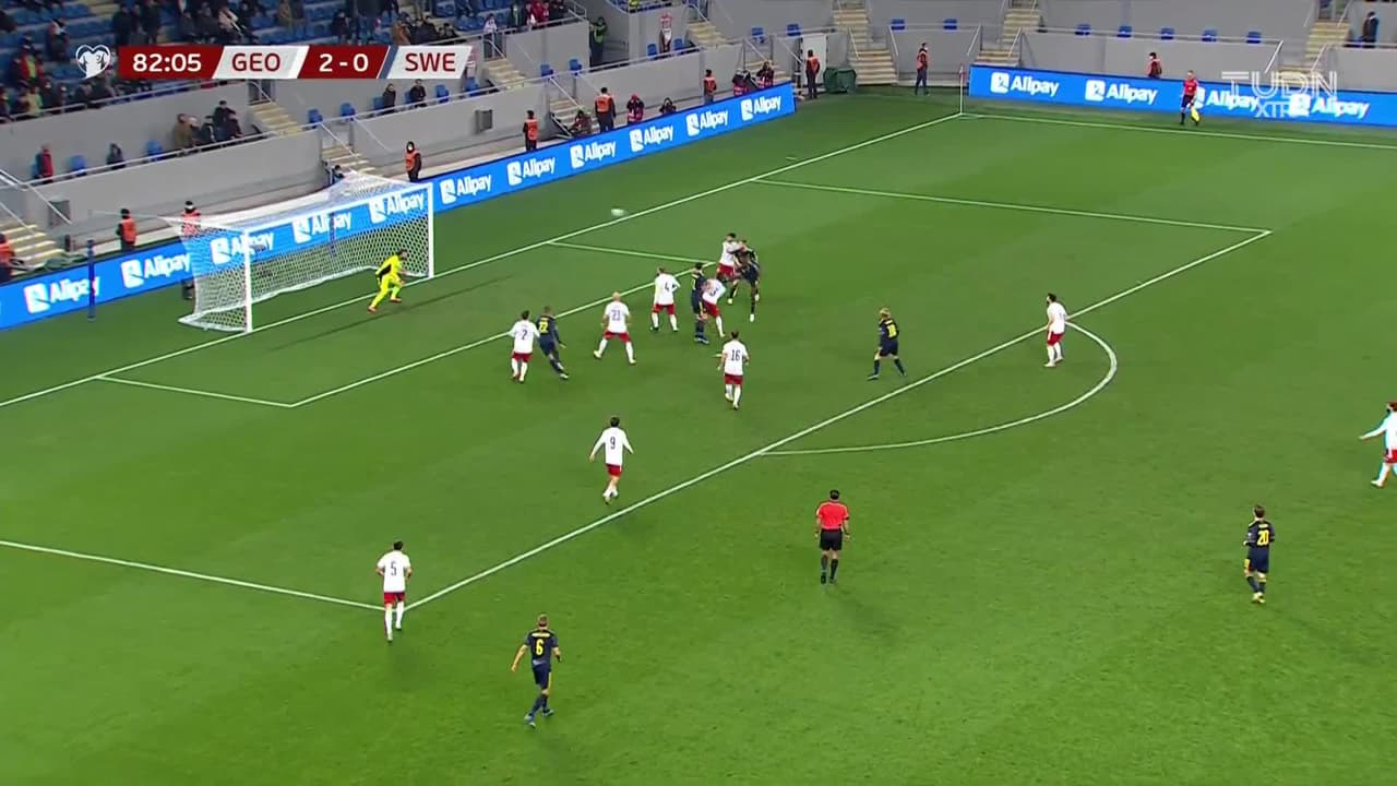 Tiro atajado junto al lado derecho de la portería. Alexander Isak (Suecia) disparo de cabeza desde el centro del área. Asistencia de Ludwig Augustinsson con un centro al área.