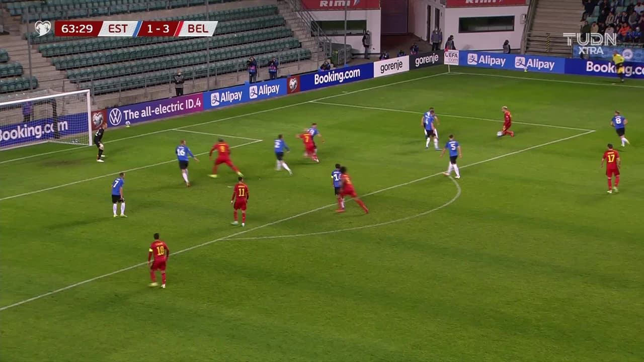 Tiro atajado al ángulo superior derecho. Alexis Saelemaekers (Bélgica) zurdazo desde el lado derecho dentro del área. Asistencia de Leandro Trossard.