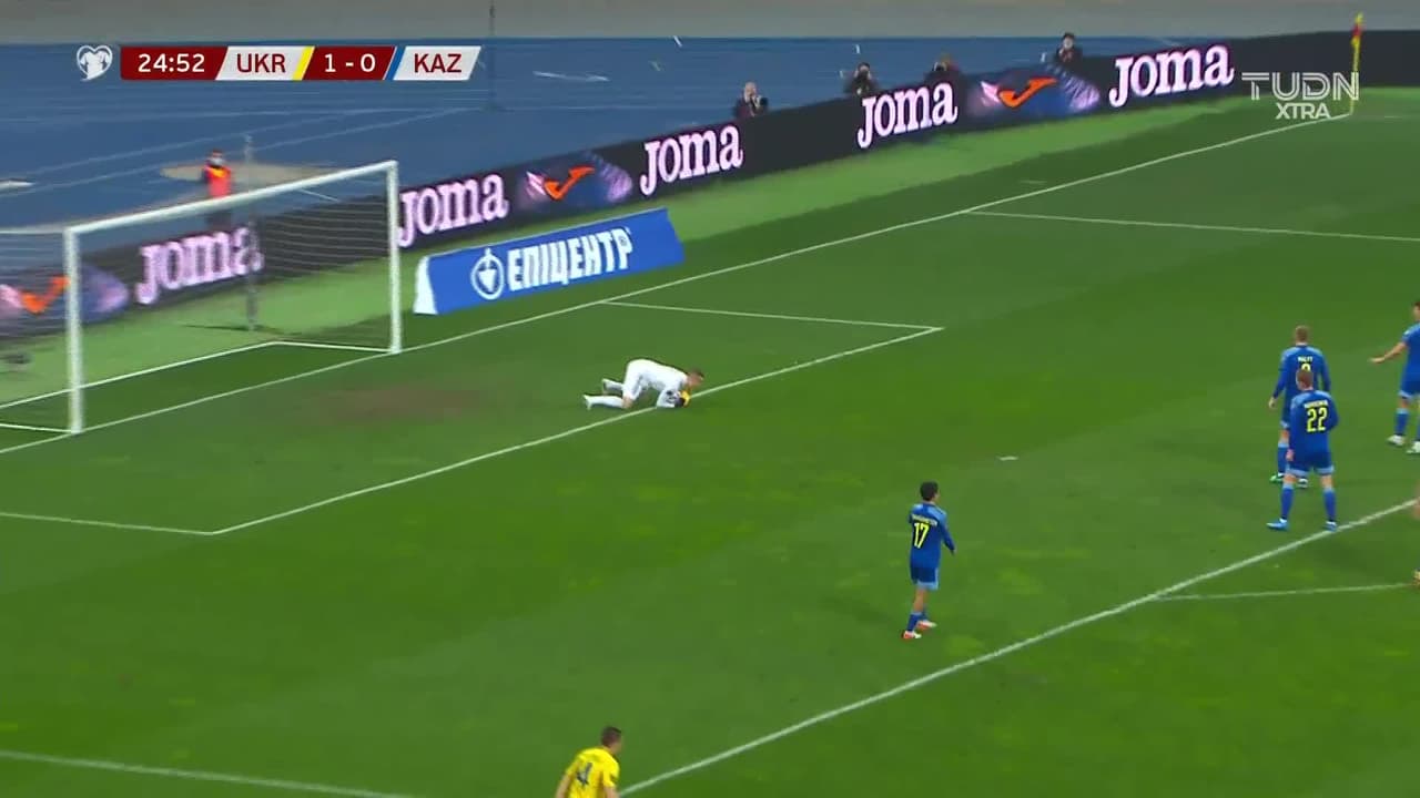Tiro atajado junto al lado derecho de la portería. Júnior Moraes (Ucrania) Disparo con la derecha desde fuera del área. Asistencia de Roman Yaremchuk.