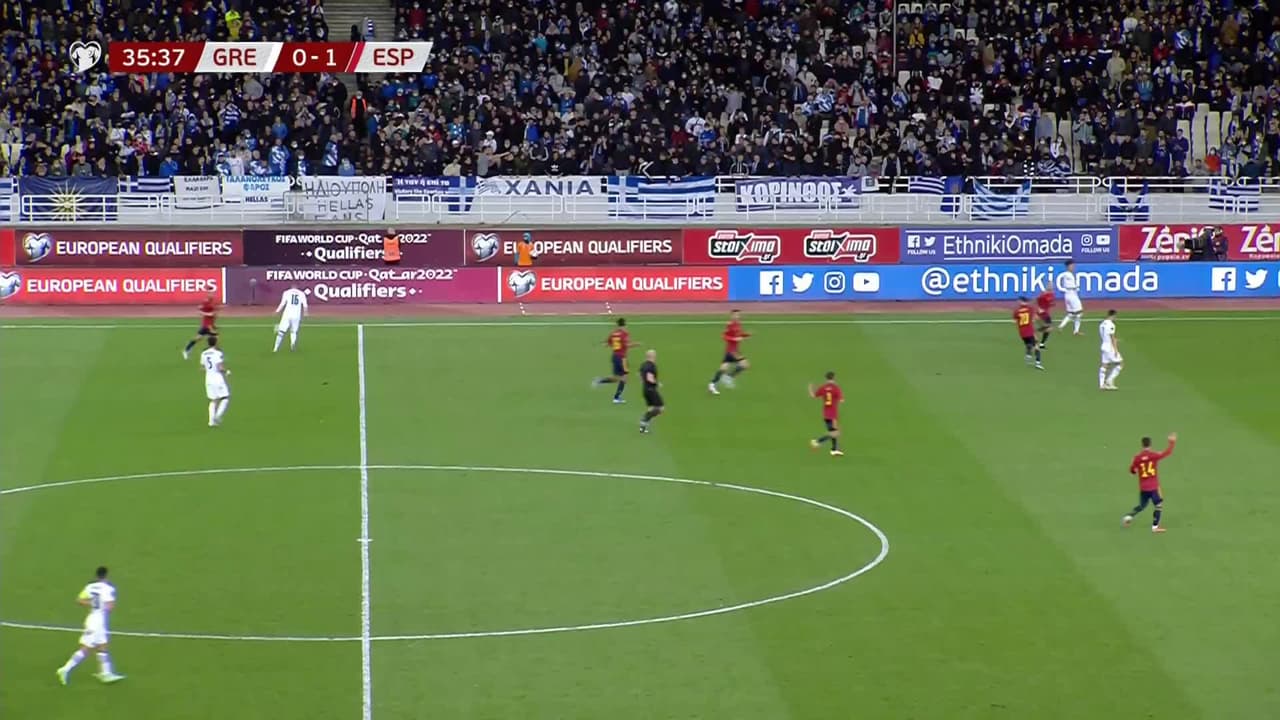 Tiro atajado raso al centro del arco. Álvaro Morata (España) zurdazo sin ángulo desde la izquierda. Asistencia de José Gayà.
