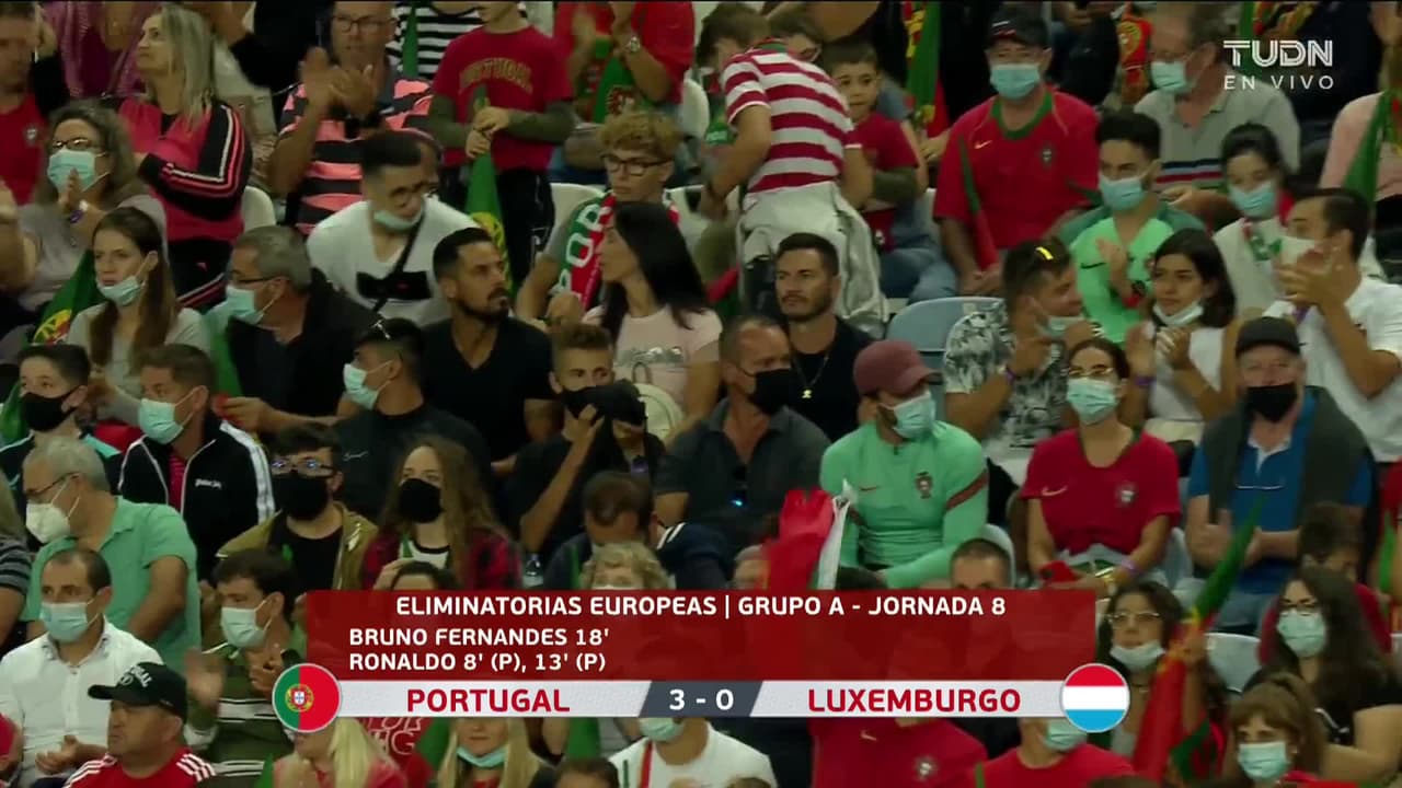 Tiro atajado. André Silva (Portugal) disparo de cabeza desde el centro del área.