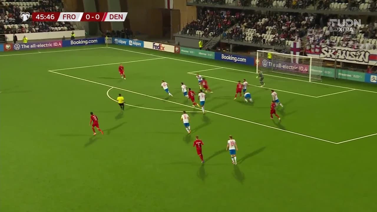 Remate parado bajo palos a rás de suelo. Andreas Skov Olsen (Dinamarca) remate con la izquierda desde el centro del área. Asistencia de Jonas Wind.