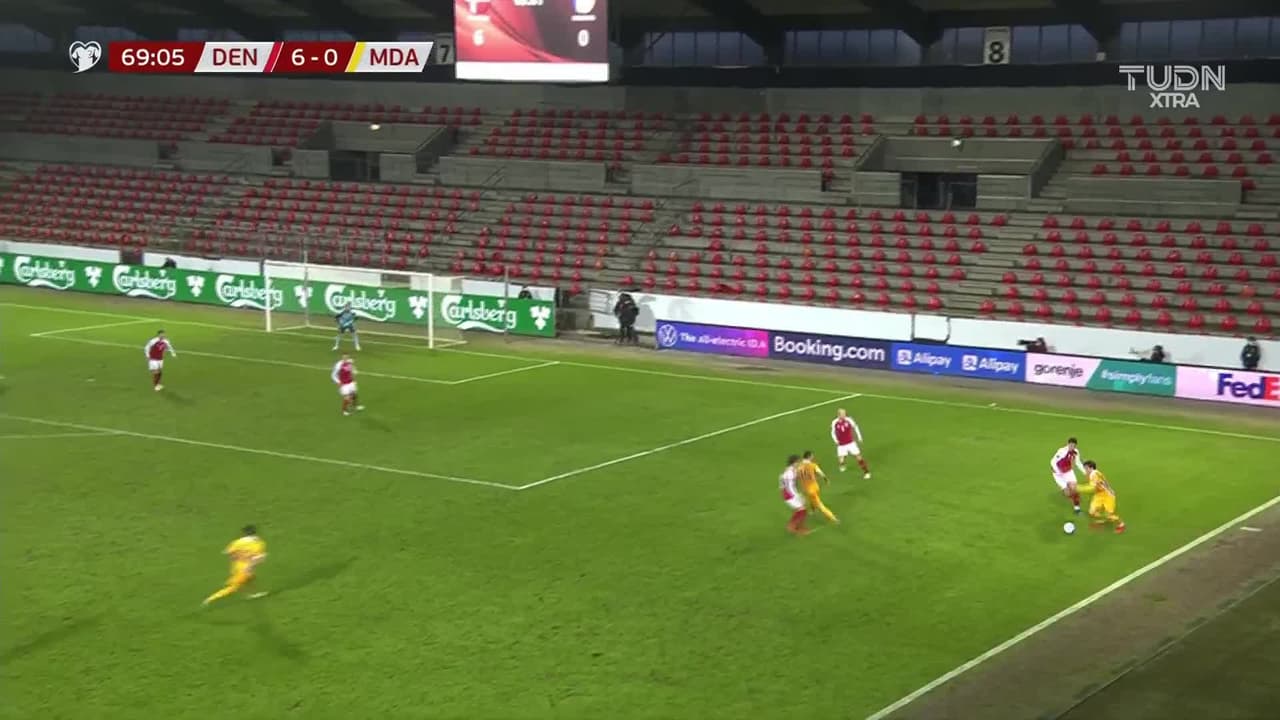 Tiro atajado junto al lado derecho de la portería. Andrei Cojocari (Moldova) zurdazo desde fuera del área.